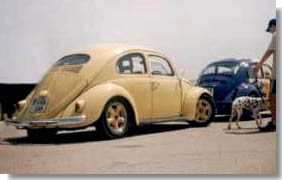 ![]() Owner: Thomas Woods For readers who remember our first V-Dubs Club event last year, this car was the first car in the line-up. Thomas’s Beetle is a true California Look car … lowered, with a big motor, smoothed body and striking yellow paint job. The car has been modified in stages and next time you see it, it will have evolved yet again, as more enhancements are planned. How did Thomas get his “looker” like this? By making a lot of subtle modifications. The suspension has been dropped by fitting sway-aways up front and a one spline drop at the back. More suspension travel is provided at the front since the bump stop bars were rotated upwards slightly. There are gas shocks all round to compensate for the short suspension travel and provide a firm ride. Under the back lurks the 1600cc twin port motor, which delivers plenty of power when the gas pedal is kicked into action. This car was manufactured in 1959 but oddly, when Thomas bought the car, it had cable operated brakes! I can only assume the original floor rotted through and somebody fitted a good, 1950 floor pan, complete with suspension & brakes in the past. Suffice to say the brakes were changed to a modern hydraulic system. Lightweight EMPI 5 wheels were then fitted all round. The body had all the trim removed and the holes welded-up to give a smooth finish. The semaphore indicators were also welded-up and new indicators installed behind the horn grills instead. At the back, the car has 1950’s pod lights and a pope’s nose deck lid. Those of you who are Beetle experts will be wondering how an oval car was manufactured in 1959. The answer is that the oval window and air vents were cut from a scrapped, pre-1958 Beetle by Thomas and welded into his car by a friend. A very neat job. Thomas will be changing the rear decklid for an earlier “W” model to complete the oval illusion. Once new wings had been fitted, the car was re-sprayed in BMW darker yellow and a new interior be fitted. Looking inside the car, you will notice that the dashboard has been smoothed out and features a speedo that has been sprayed white with no speed figures on it. There is a large rev counter which has figures on it. The front seats were changed and the interior re-stiched in black material. You may have noticed an unusual white and black spotted passenger in this car - “BJ”, Thomas’ Dalmatian dog. Readers who have seen Thomas’ car would never guess it was originally a tatty old Beetle, found abandoned in a quarry, where it had been left for three years! Thomas managed to rescue the car and transformed it into the nice Cal Looker you see today. After our last event, the car was back at the garage, having the W Decklid fitted. The car will then be re-sprayed. The headlights are being modified to incorporate turn indicators, US spec style. It should be ready for the VRT test. V-Dubs club would like to thank Thomas for coming to our events and look forward to seeing his updated car.