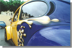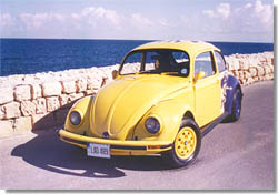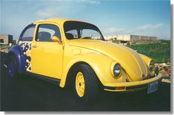car is a 1972 Beetle, which has been subjected to a few modifications.